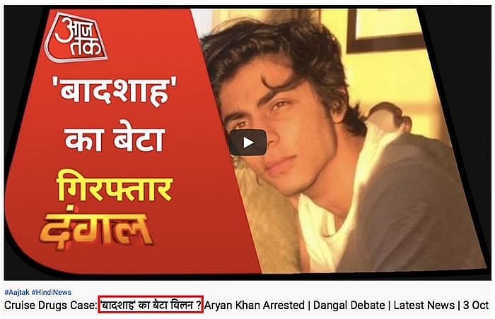 एनसीबी मामले पर चैनल का कवरेज बाकी की तरह ही था जिसमें अनेकों जमीनी रिपोर्ट और लगभग सभी हेडलाइनों में शाहरुख खान के बेटे आर्यन खान का जिक्र था. कई कानूनी जानकारों और पूर्व एनसीबी अधिकारियों के पैनल वाली एक डिबेट का शीर्षक "शाहरुख खान का बेटा फंसेगा या बचेगा?” था. डिबेट में यह समझने की कोशिश की गई कि मिले हुए मादक पदार्थों की मात्रा के अनुसार, क्या कोई "ड्रग्स बेचने" वालों का नेटवर्क शामिल है और क्या आर्यन खान को छोड़ देना चाहिए?